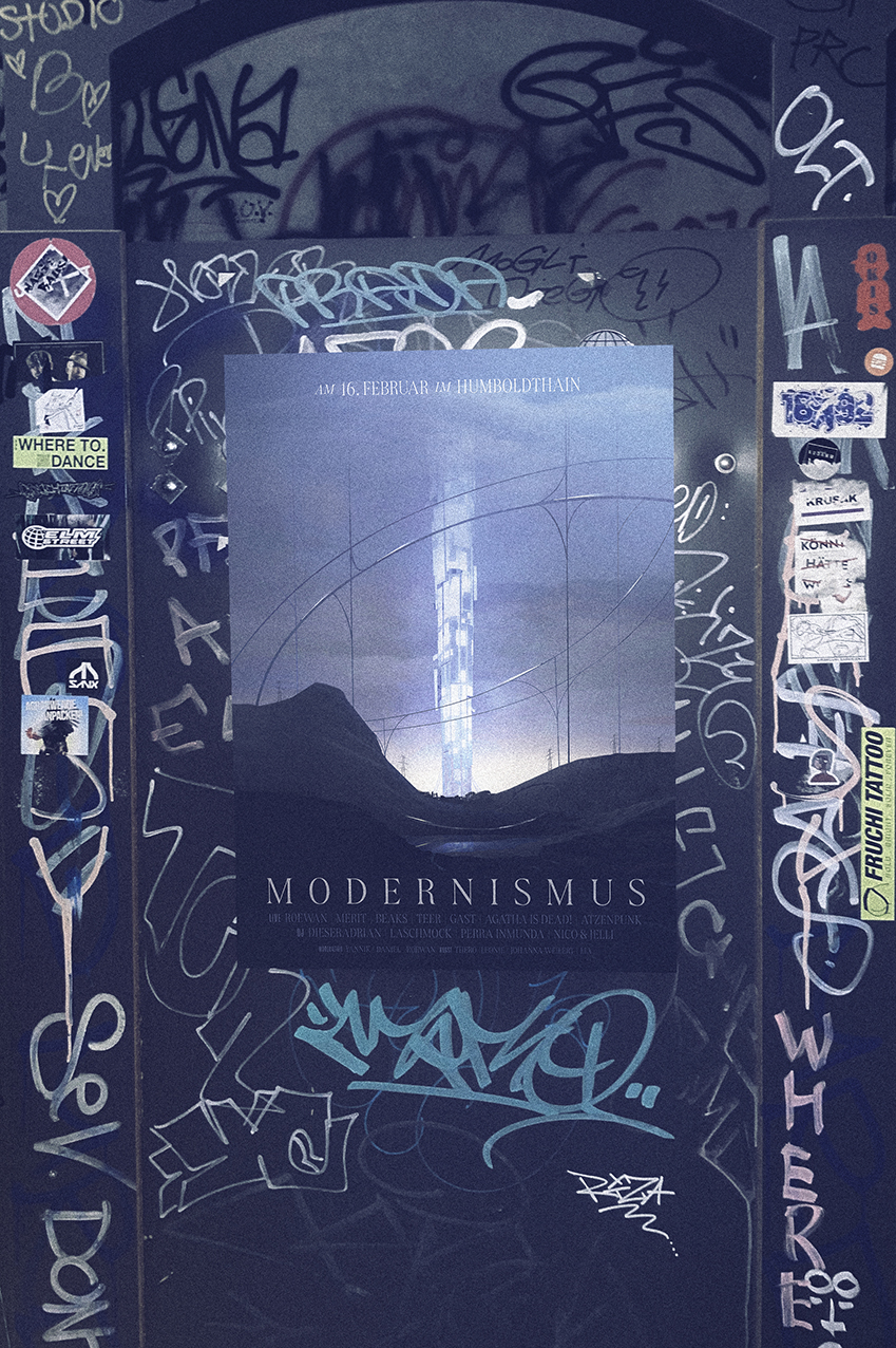 Modernismus is a Berlin concert event series featuring upcoming artists and bands, whose acts are intervowen with a changing worldbuilding and framed by art installations. This is our Instagram.